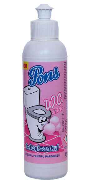 20007 DEO PONS WC CHICLE 200ML este un deodorant special conceput pentru toalete, avand un parfum placut de guma de mestecat.